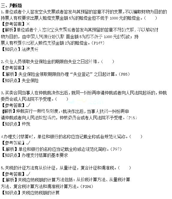 2016初级会计职称经济法基础判断题真题(5.14网友版)