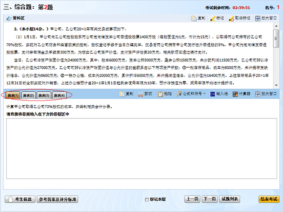 综合题几乎每道题里都有好几个要求需要考生作答(如上图左边中间的提示),考生千万不能掉以轻心,做完要求1就直接跳到下一大题,平时在进行机考练习,审题时注意扫一眼题目要求,有多个要求的提醒自己千万别忘记做完,练习多了,养成了习惯,上考场时就不会因为漏做而失分。