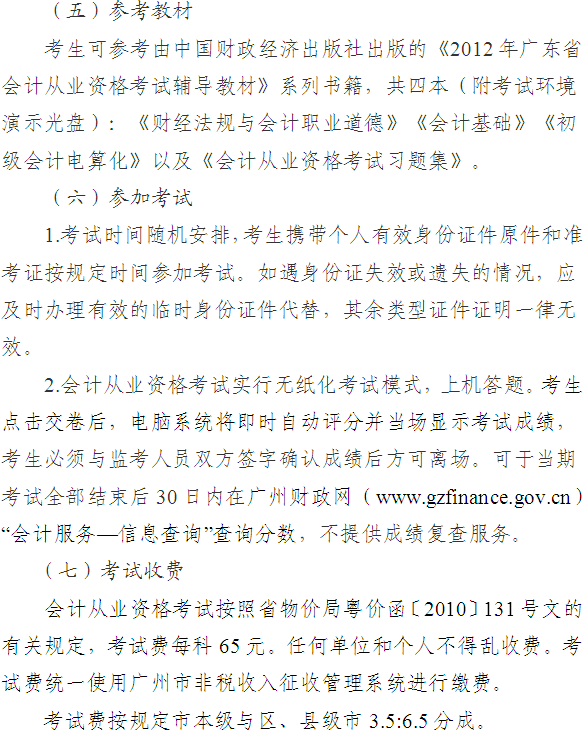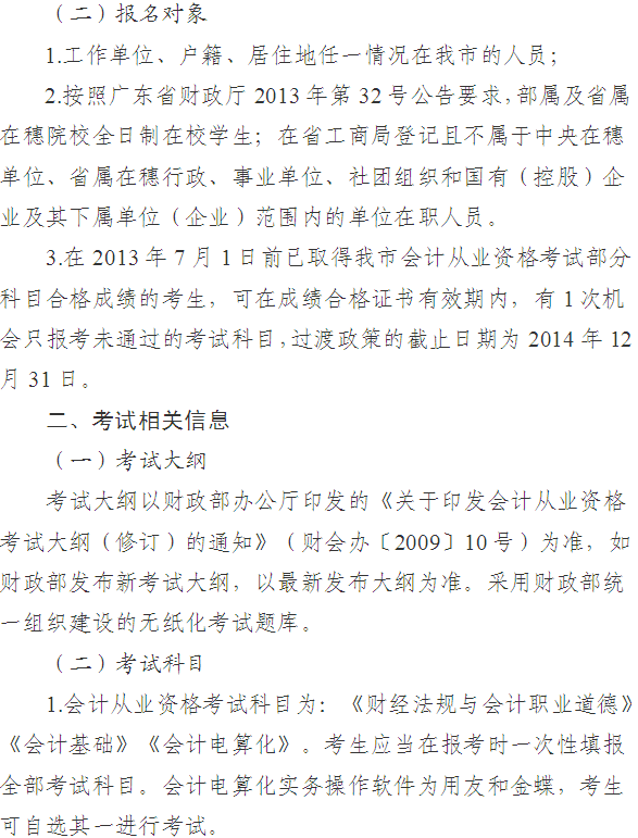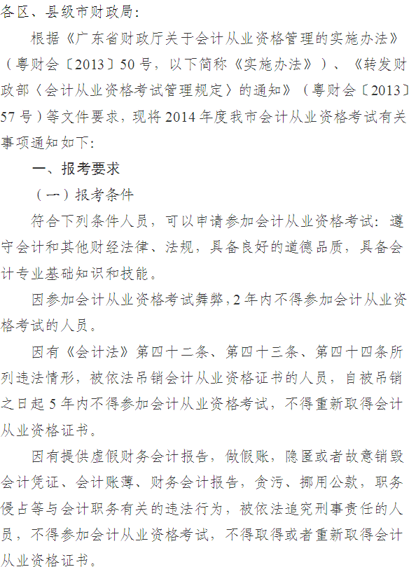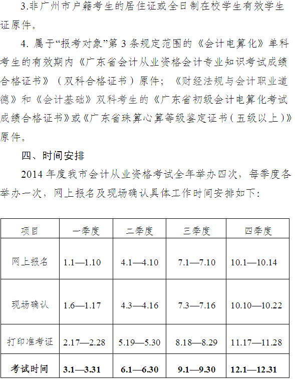 广州市2014第一季会计从业资格考试报名时间1月1日-10日