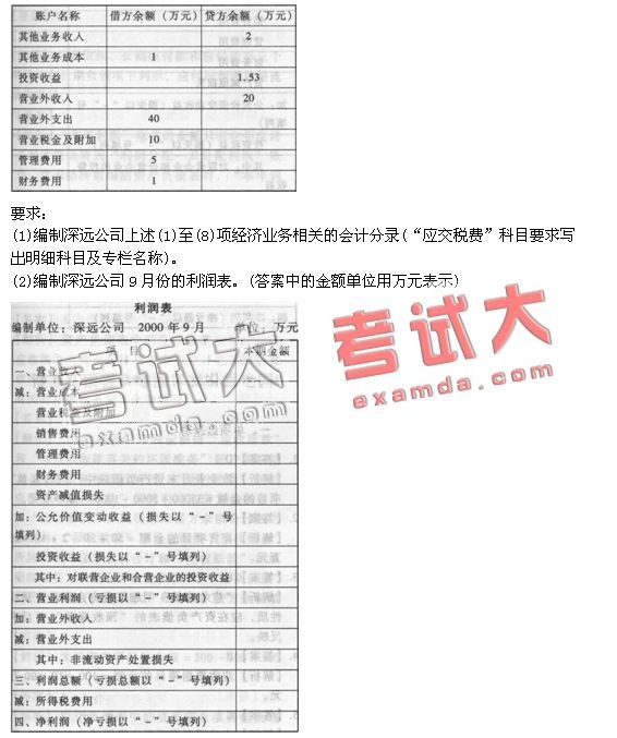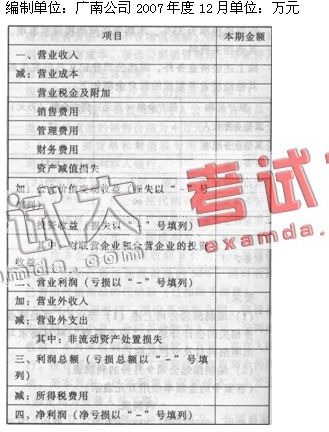 (2)编制广南公司2007年12月份的利润表。(答案中的金额单位用万元表示)。