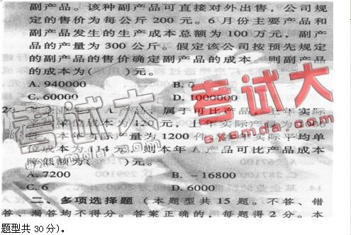 17.某公司生产甲产品和乙产品,甲产品和乙产品为联产品。6月份发生加工成本600万元。甲产品和乙产品在分离点上的销售价格总额为750万元,其中甲产品的销售价格总额为450 万元,乙产品的销售价格总额为300万元。采用售价法分配联合成本,乙产品应分配的联合 成本为( )万元。