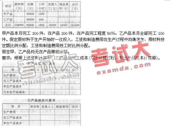 2.某工业企业生产甲、乙两种产品的有关资料如下表: