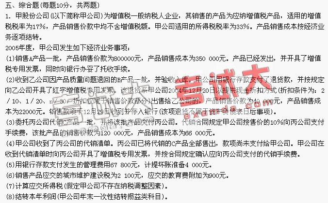 1.A股份有限公司(以下简称A公司)2005年度的有关资料如下: