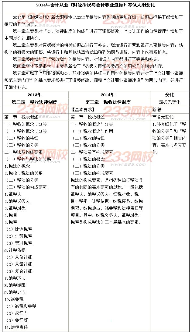 2014会计从业资格《财经法规》新旧大纲对比分析