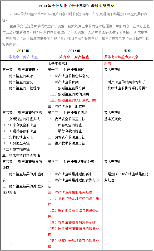 2014会计从业资格《会计基础》新旧大纲对比分析