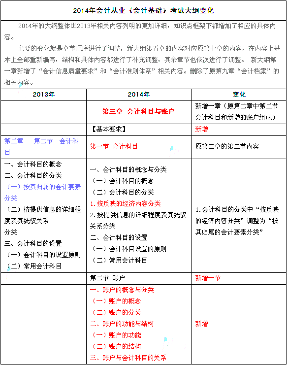 2014会计从业资格《会计基础》新旧大纲对比分析