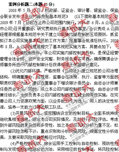 2009年高级会计师考试案例分析真题(1)