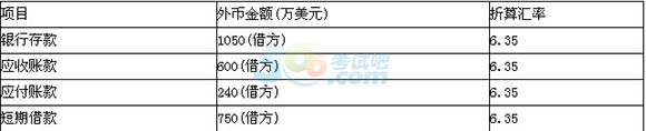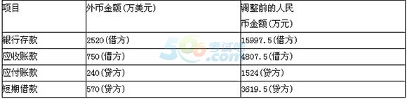 (5)31日,根据当日即期汇率对有关外币货币性项目进行调整并确认汇兑差额,当日有关外币的即期汇率为1美元=6.40元人民币,有关科目余额如下: