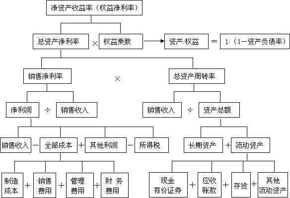 杜邦分析法又称杜邦财务分析体系,简称杜邦体系,是利用各主要财务比率指标间的内在联系,对企业财务状况及经济效益进行综合系统分析评价的方法。该体系是以净资产收益率为起点,以资产净利率和权益乘数为核心,重点揭示企业获利能力及权益乘数对净资产收益率的影响,以及各相关指标间的相互影响作用关系。