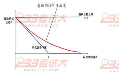 看跌期权的期权价格等于内涵价值加上时间价值。其价格曲线图如下:
