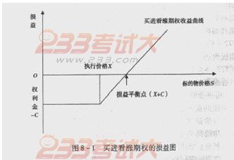①买进看涨期权:买进一定执行价格X的看涨期权,在支付一笔权利金C后,便可享有在到期日之前买入或不买入相关标的物的权利。来源:考试大