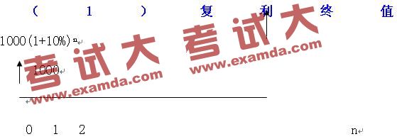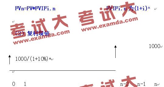 例如,将1000元存入银行,年利率为10%,一年以后的复利终值为1000(1+10%);两年以后的复利终值为1000(1+10%)(1+10%);三年以后的复利终值为1000(1+10%)(1+10%)(1+10%)……………n年以后的复利终值为1000(1+10%)ⁿ