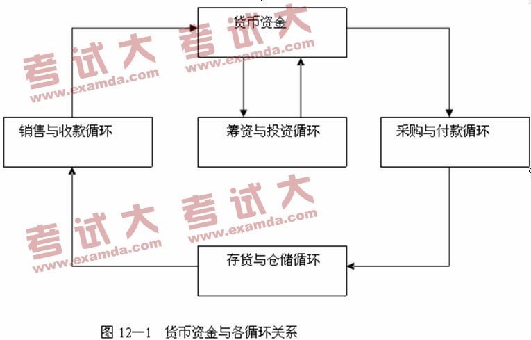 货币资金与前述的多个循环交易都有直接的关系。如果从循环的角度来看企业的动作,货币资金是各循环的枢纽,起着“资金池”的作用。货币资金最初以投资或筹资的形式从投资者或债权人手中流入企业,企业用这些货币资金去购买生产经营所需的资源和劳务,并用购入的资源和劳务生产出企业准备出售的产品和服务,然后将这些完工的产品和服务出售给顾客以换回货币资金。最后,换回的货币资金一部分作为股利或利息支付给投资者和债权人,另一部分则用来购买新的资源和劳务,继续下一轮的循环。