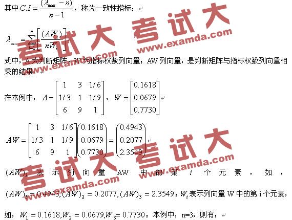 ① 由于C.R<0.1,因而可以认为通过判断矩阵得到的权数达到了一致性要求。