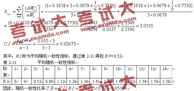 ① 计算随机一致性比率 C.R: C.R=C.I/R.I (2-11)