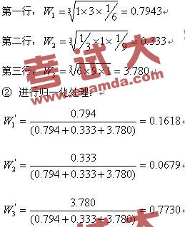 通过以上计算,初步确定三个指标的权数为:0.1618,0.0679,0.7730