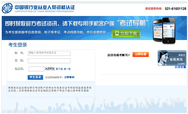 B:已报考过之前银行考试、并未使用身份证注册的考生只能凭之前注册的报考账号和密码直接登录报名系统报考;