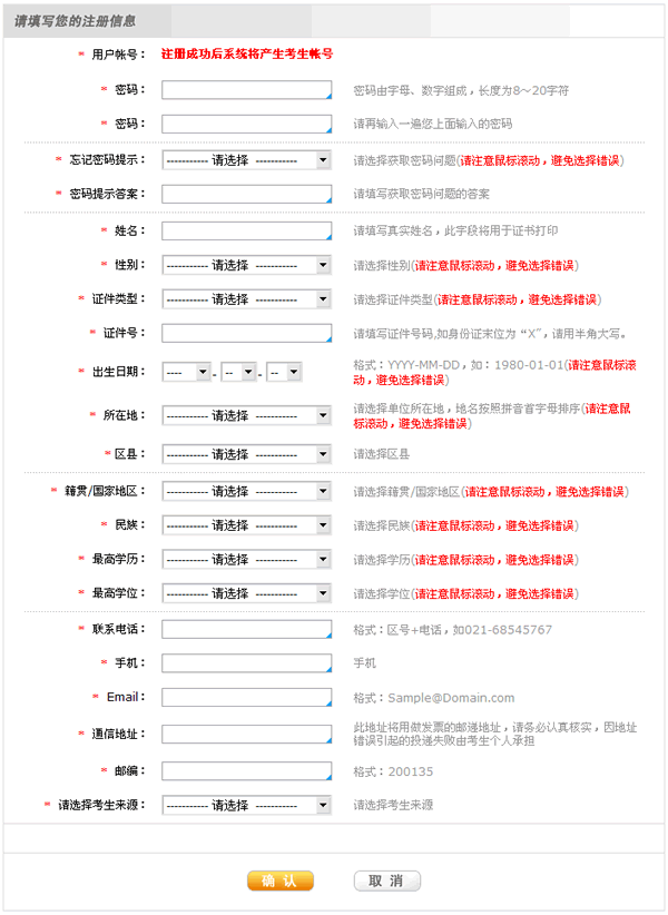 请考生在填报个人信息时,注意认真核对个人身份证号码、手机号码、所在单位等关键信息项,确保信息真实准确,避免因本人填报信息有误导致报名发票无法顺利寄达、资格审查未能通过等问题。