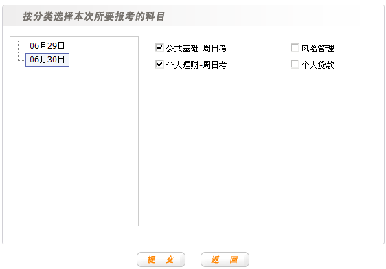 (一)考试科目(可任意选考):公共基础、个人理财、风险管理、公司信贷及个人贷款。