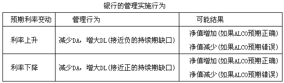 | 正确答案:AC 解题思路:预期市场利率上升的时候,银行应主动营造敏感性正缺口,通过缩短资产到期日,延长负债到期日,增加利率敏感性资产,减少利率敏感性负债来实现。这样,当市场利率上升的时候能扩大净利息差额。而预期市场利率下降的时候,银行应主动营造敏感性负缺口,过延长资产到期日,缩短负债到期日,减少利率敏感性资产,增加利率敏感性负债来实现。这样,当市场利率下降的时候能扩大净利息差额。 |