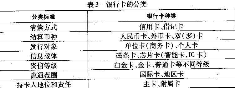正确答案:C 解题思路:银行卡的分类如表3所示。![]() |