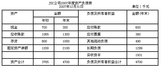 JSC公司2007年度财务报表主要资料如表所示。![]() ![]() |
