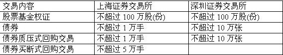 4)国债与债券回购:单笔≥1万手,或者≥1000万元;