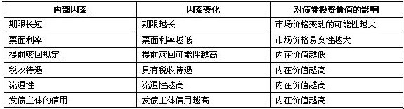 内部因素和债券投资价值相关关系(重点)