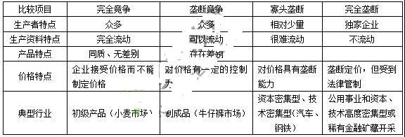 行业分为四种市场结构:(1)完全竞争;(2)不完全竞争;(3)寡头垄断;(4)完全垄断。