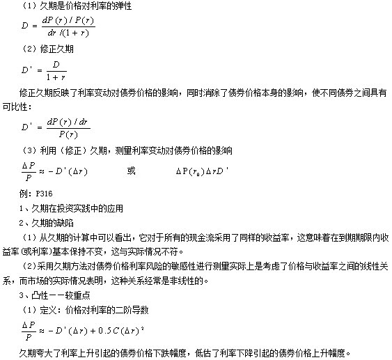 (4)多只债券的组合久期等于各只债券久期的加权平均,其权数等于每只债券在组合中所占的比重。