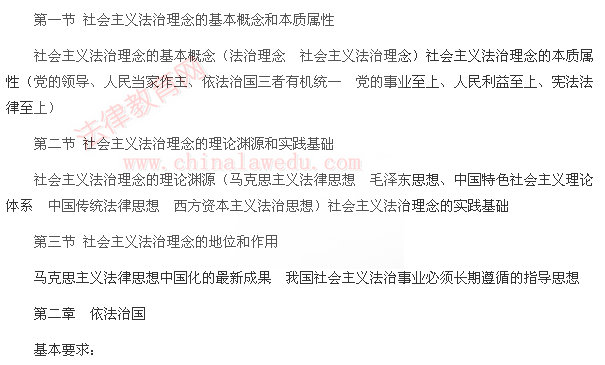 熟悉并能够运用:社会主义法治理念是马克思主义法律思想中国化的最新 成果,是中国特色社会主义理论体系的重要组成部分,是我国社会主义法治事业必须长期遵循的指导思想;正确运用社会主义法治理念分析和评价法治实践和有关案例。