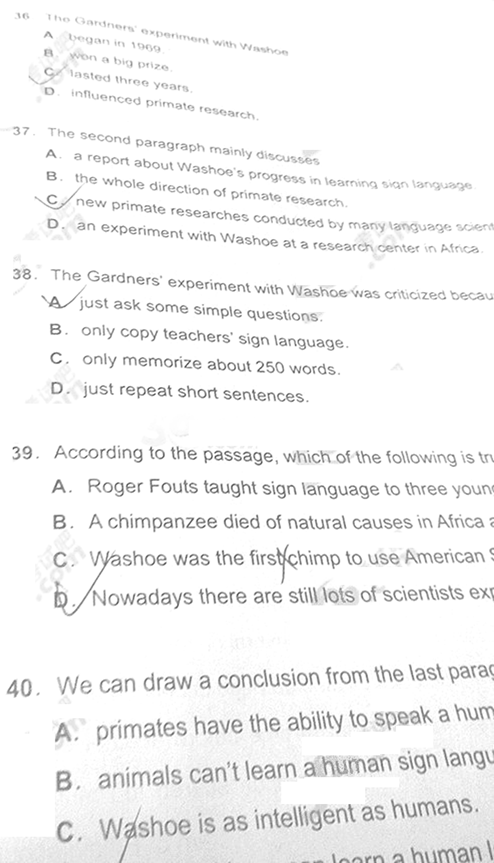 第二篇 原文出处概括大意第十篇Washoe learned American Sign language.