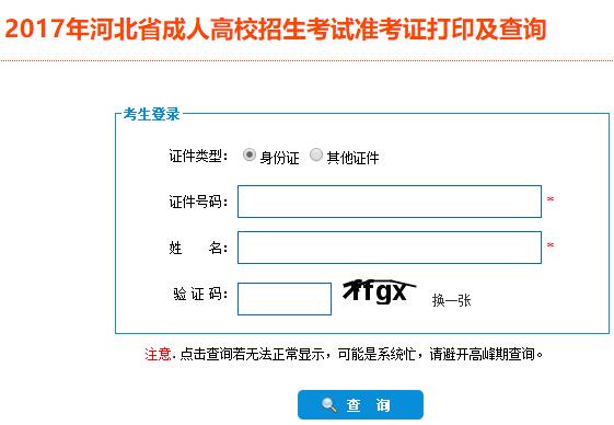 2017年河北成人高考继续实行网上打印准考证,2017年河北成人高考准考证打印时间为10月21日至29日,如果考生没有确认或登陆时间不在打印准考证时间范围内,考生点击“打印准考证”后,右侧页面会提示“不能打印准考证”。