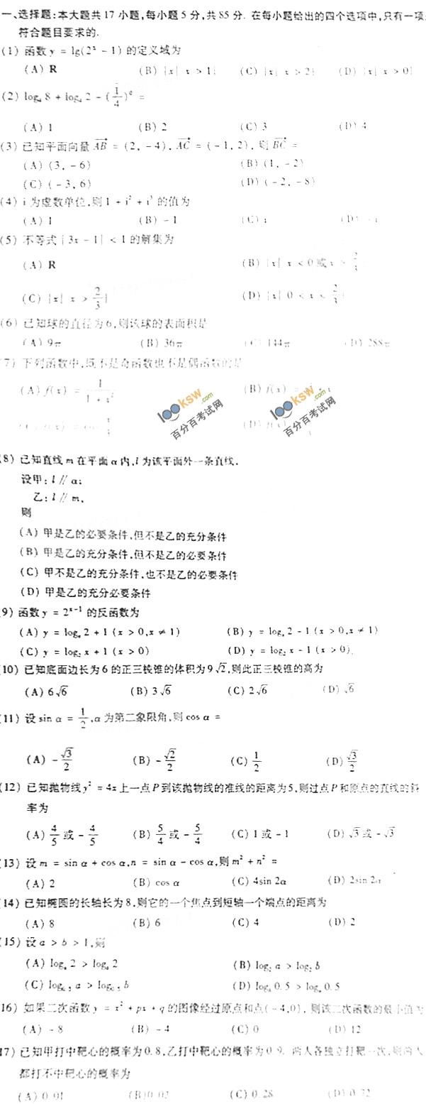 • 2011年成人高考高起点文科数学试题及答案(网友版)