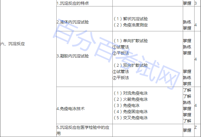 | (2)免疫电泳 | 熟练掌握 | 4 | ||