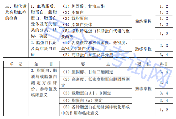 | (3)脂代谢异常的检查 | 了解 | 3,4 | ||