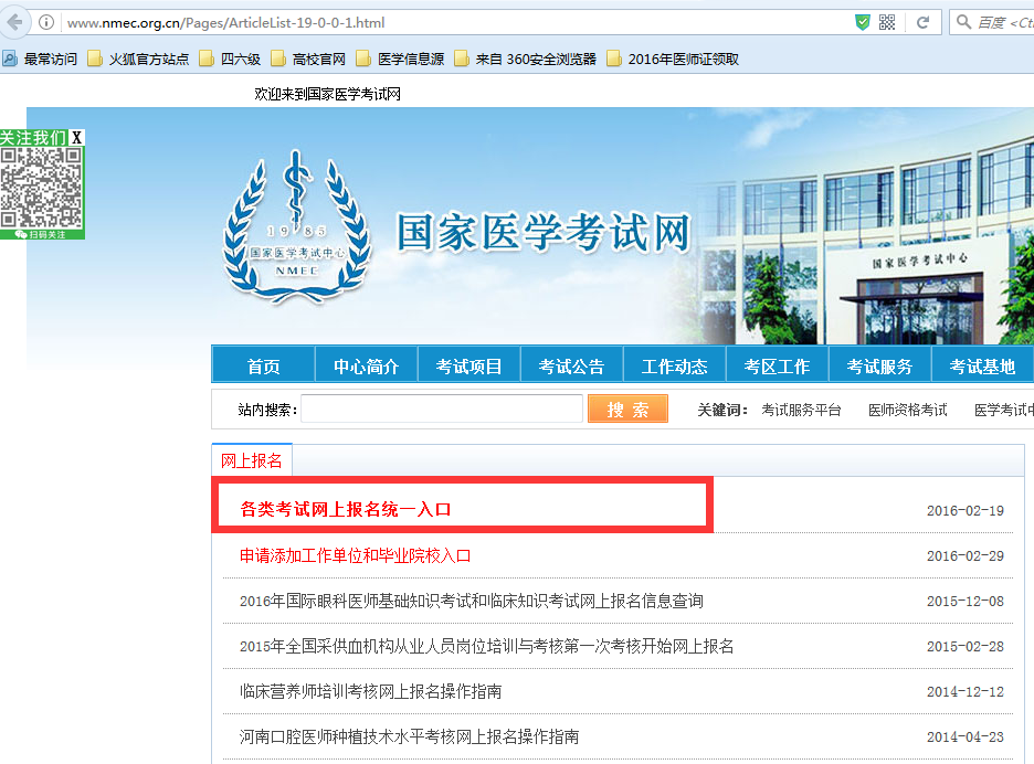 (一)登录国家医学考试网(网址是:http://www.nmec.org.cn/),点击:“网上报名”;
