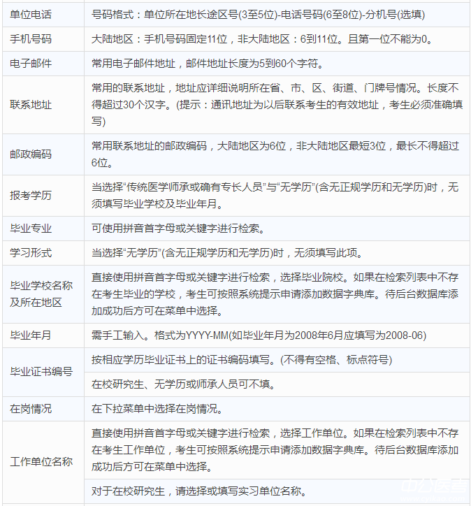 注意:报名表是在国家医学考试网上报名时在线填写的,大家可以参考以上内容进行填写,成功提交报名后,可以将报名表下载打印。