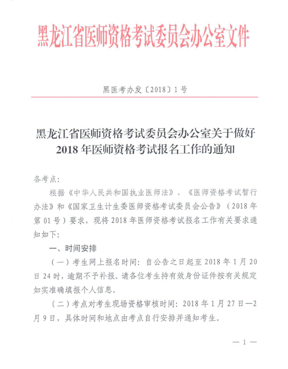 2018年黑龙江省医师资格考试报名|现场审核相关工作通知