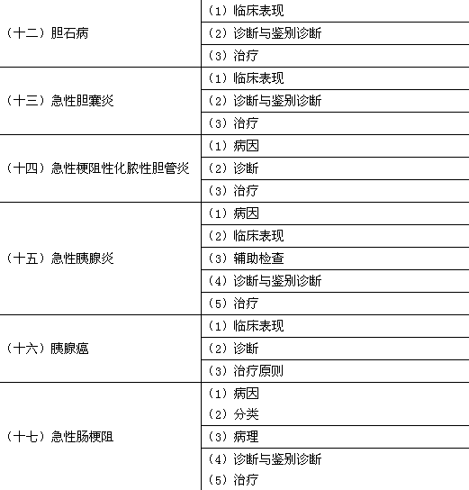 | 3.脾破裂 | (1)诊断与鉴别诊断 (2)治疗 |