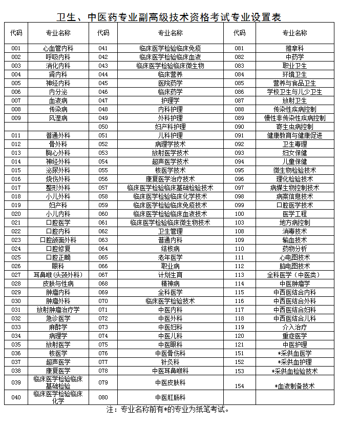 附件:卫生、中医药专业副高级技术资格考试专业设置表
