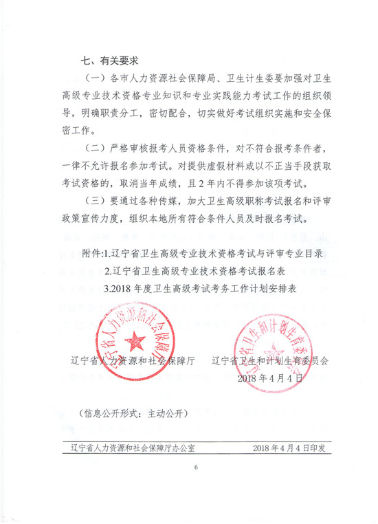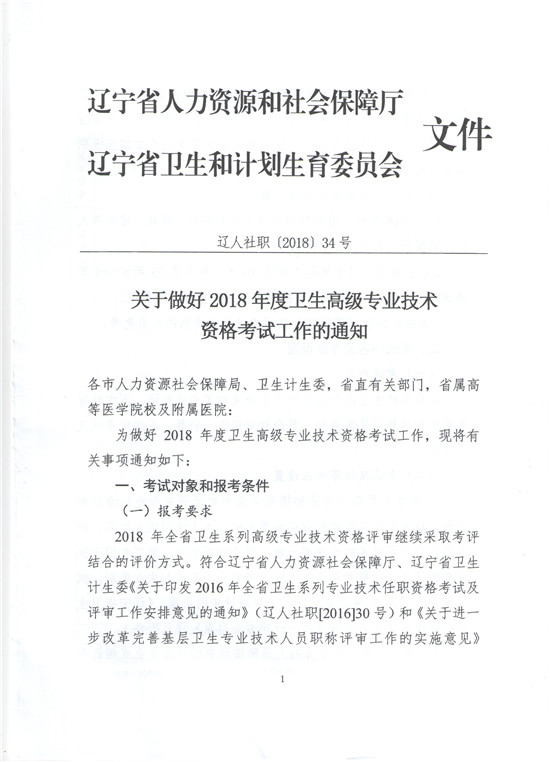 辽宁省关于做好2018年度卫生高级专业技术资格考试工作的通知