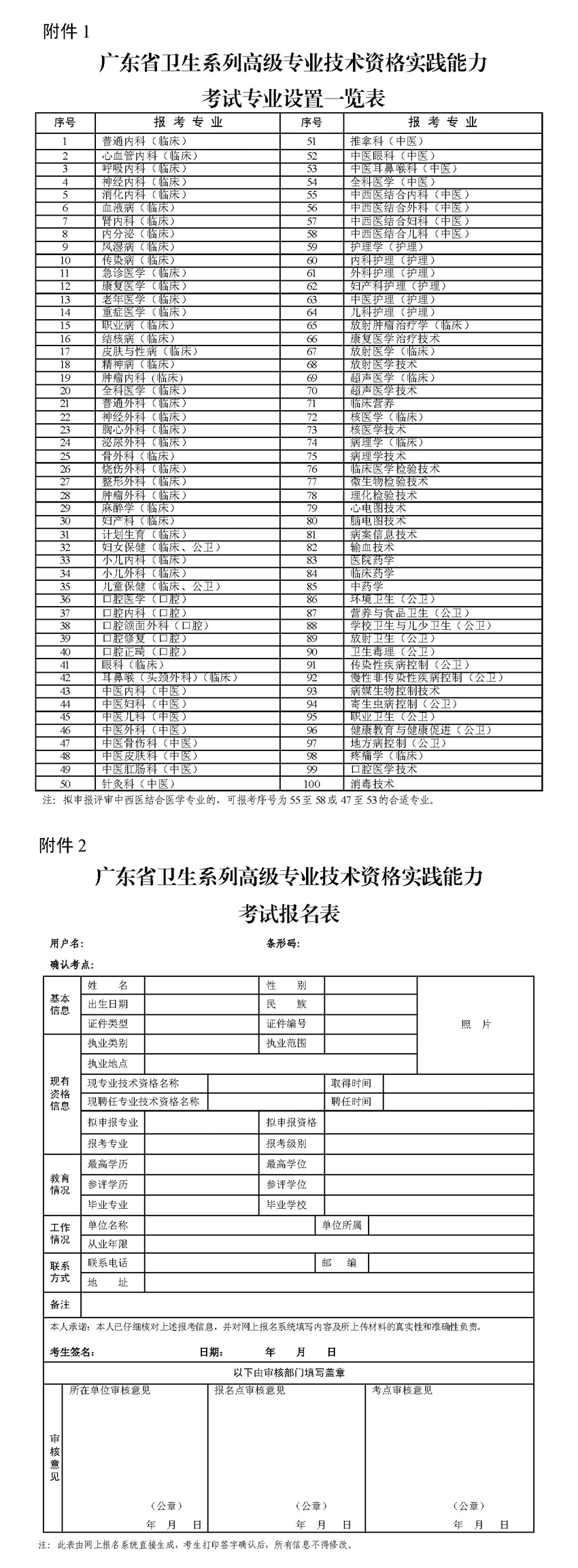 附件:1.广东省卫生系列高级专业技术资格实践能力考试专业设置一览表