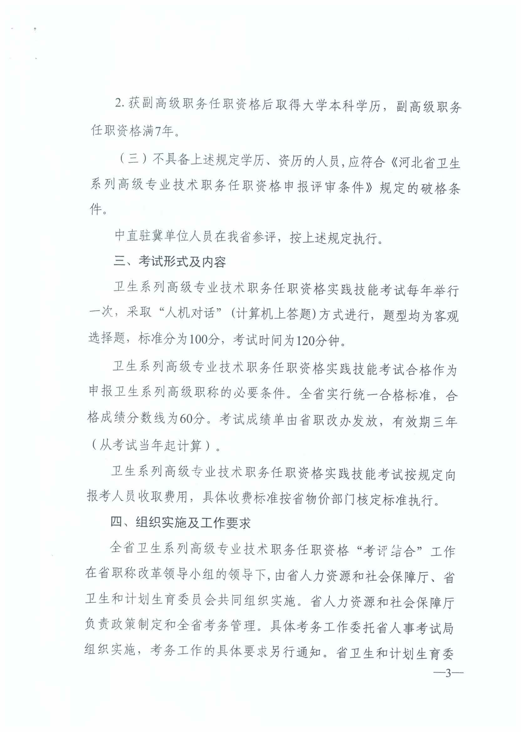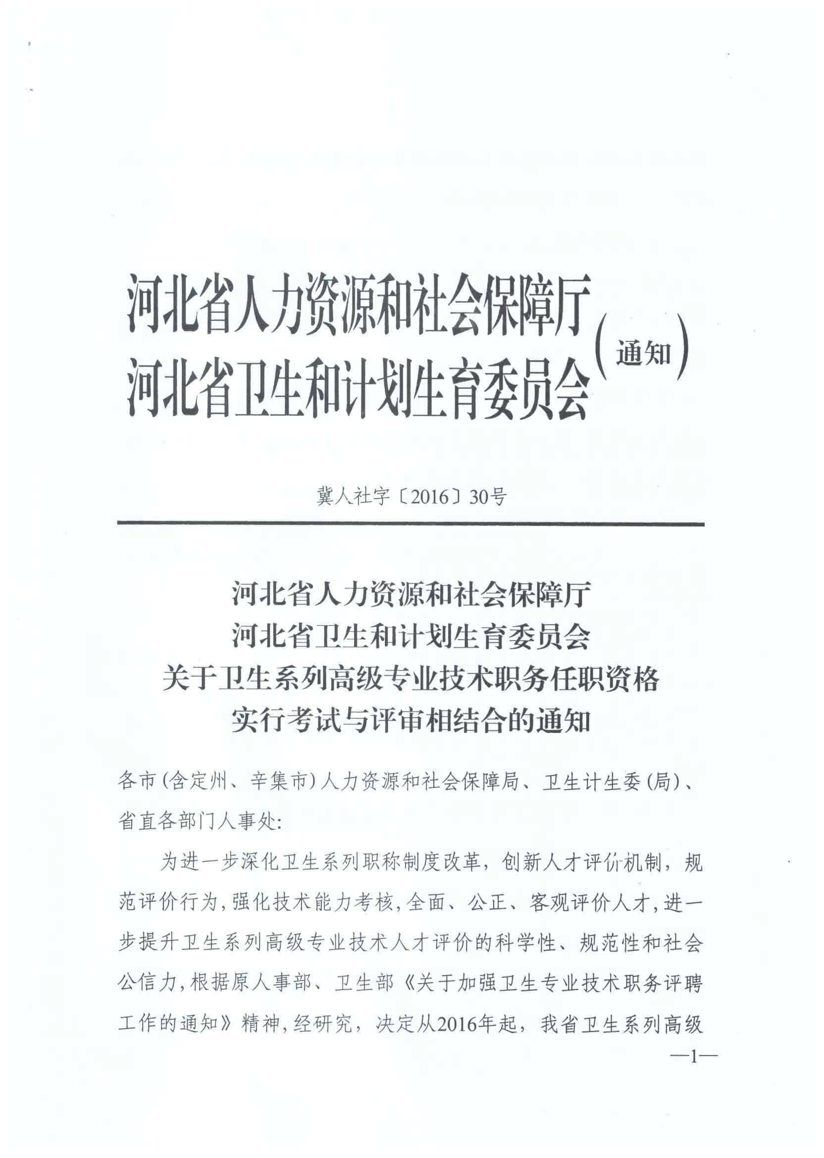 河北省关于卫生系列高级专业技术职务任职资格实行考试与评审相结合的通知