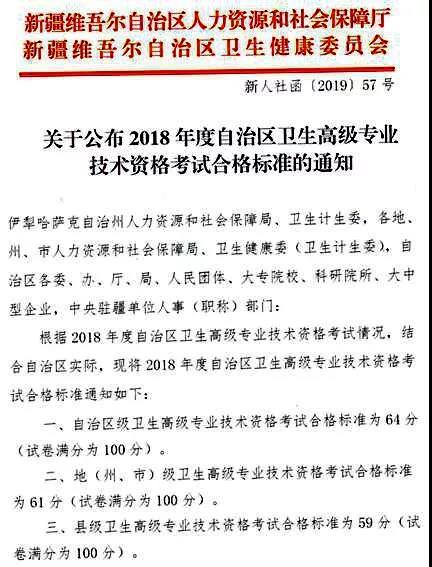 关于2018年度新疆自治区卫生高级专业技术资格考试合格标准的通知