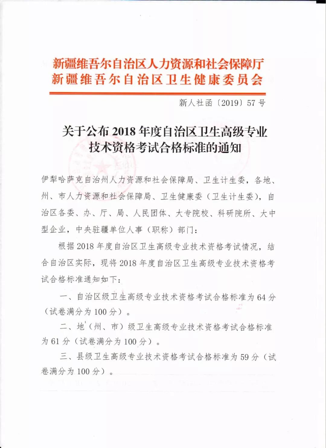 2018年新疆核医学主任医师考试合格标准确定为64分