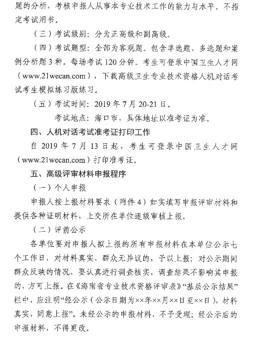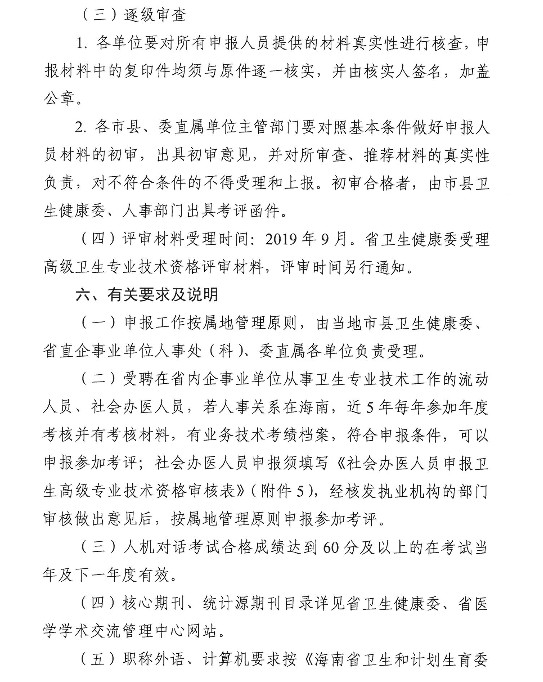 安徽省卫生系列高级专业技术资格评审标准条件/评审申报要求