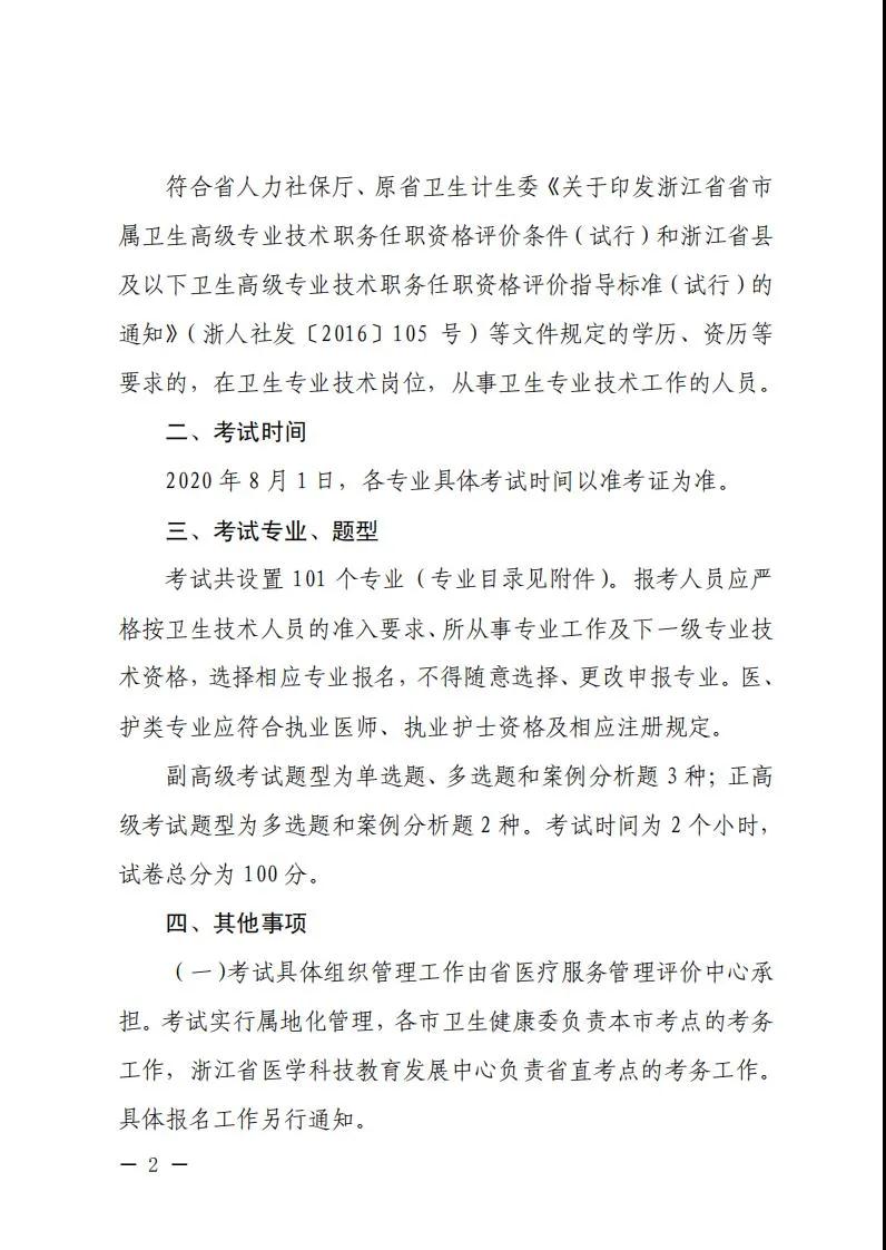 浙江省医疗服务管理评价中心关于2020年度卫生高级专业技术资格考试考务工作安排的通知