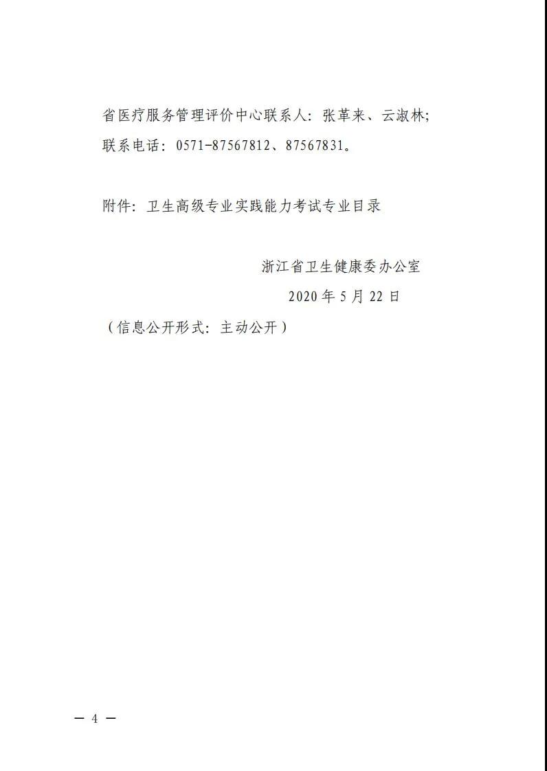 根据《浙江省卫生健康委办公室关于做好2020年度全省卫生高级专业实践能力考试有关事项的通知》(浙卫办人事[2020]1号),为做好2020年度我省卫生高级专业技术资格考试(卫生高级专业实践能力考试)的具体考务工作,现将有关事项通知如下:
