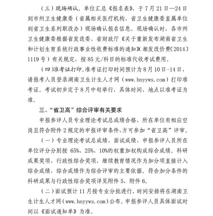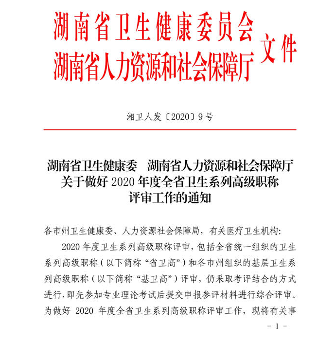 【湖南】关于开展2020年度全省卫生系列高级职务评审工作通知